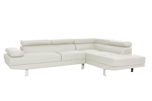 The Poundex 2 piece sectional sofa comes with a right side chaise. Its wooden frame and faux leather are durable and the interlocking pieces give plenty of space to sit or lounge. Comfort foam in the tufted seat cushions gives added support and comfort to the stylish sofa. Adjustable arm rests and back supports add to the comfort of the sofa. The soft faux leather is easy to wipe clean. This sleek sectional sofa is a sophisticated piece of furniture.